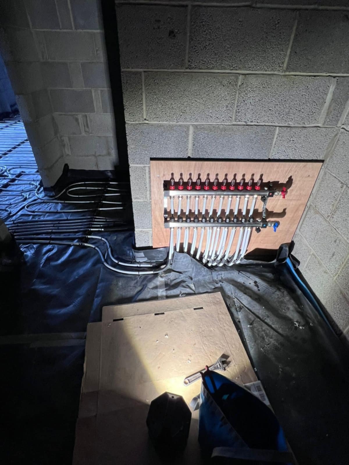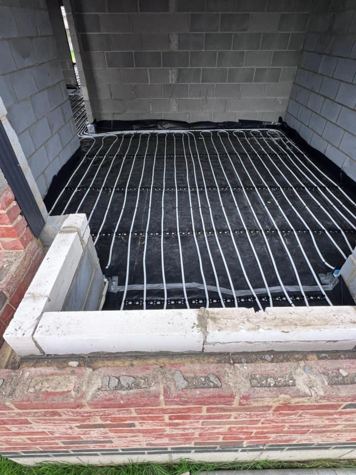 The pipe layout was carefully planned and pressure tested. Good communication before screed. They explained why the temperature has to be increased gradually once cured, which saved us from cracking anything.